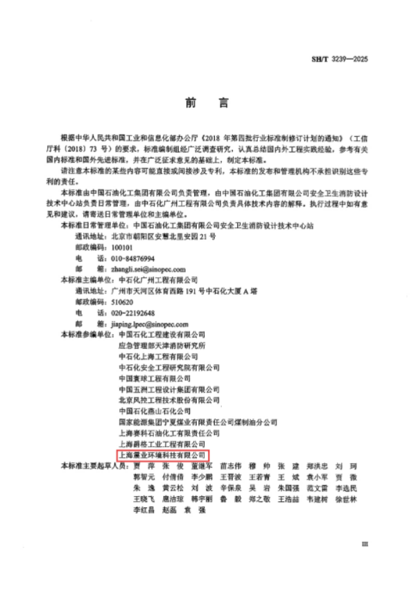 2025年11月1日,由中华人民共和国工业和信息化部发布的石油化工行业标准SH/T 3239-2025《石油化工生产区域人员避难所设计规范》正式实施。