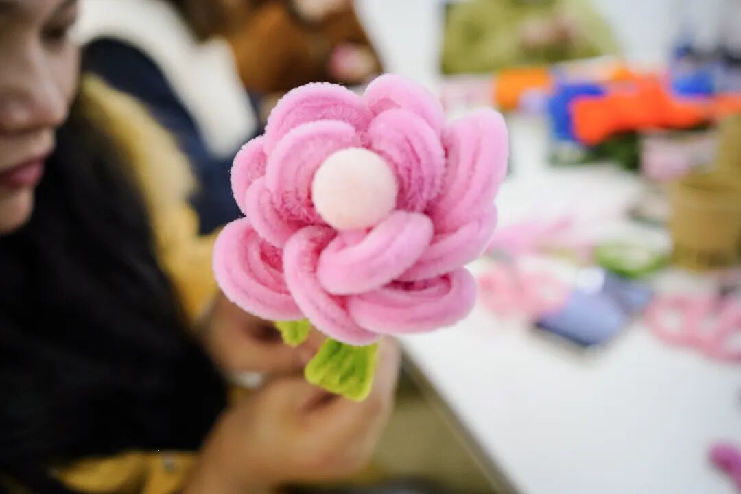 随着时间的流逝,一朵朵栩栩如生、鲜艳欲滴的花朵已经在大家的手中盛开。看着自己亲手制作出来的成品,大家成就感满满,纷纷拍照留恋,记录这美好的时刻。
